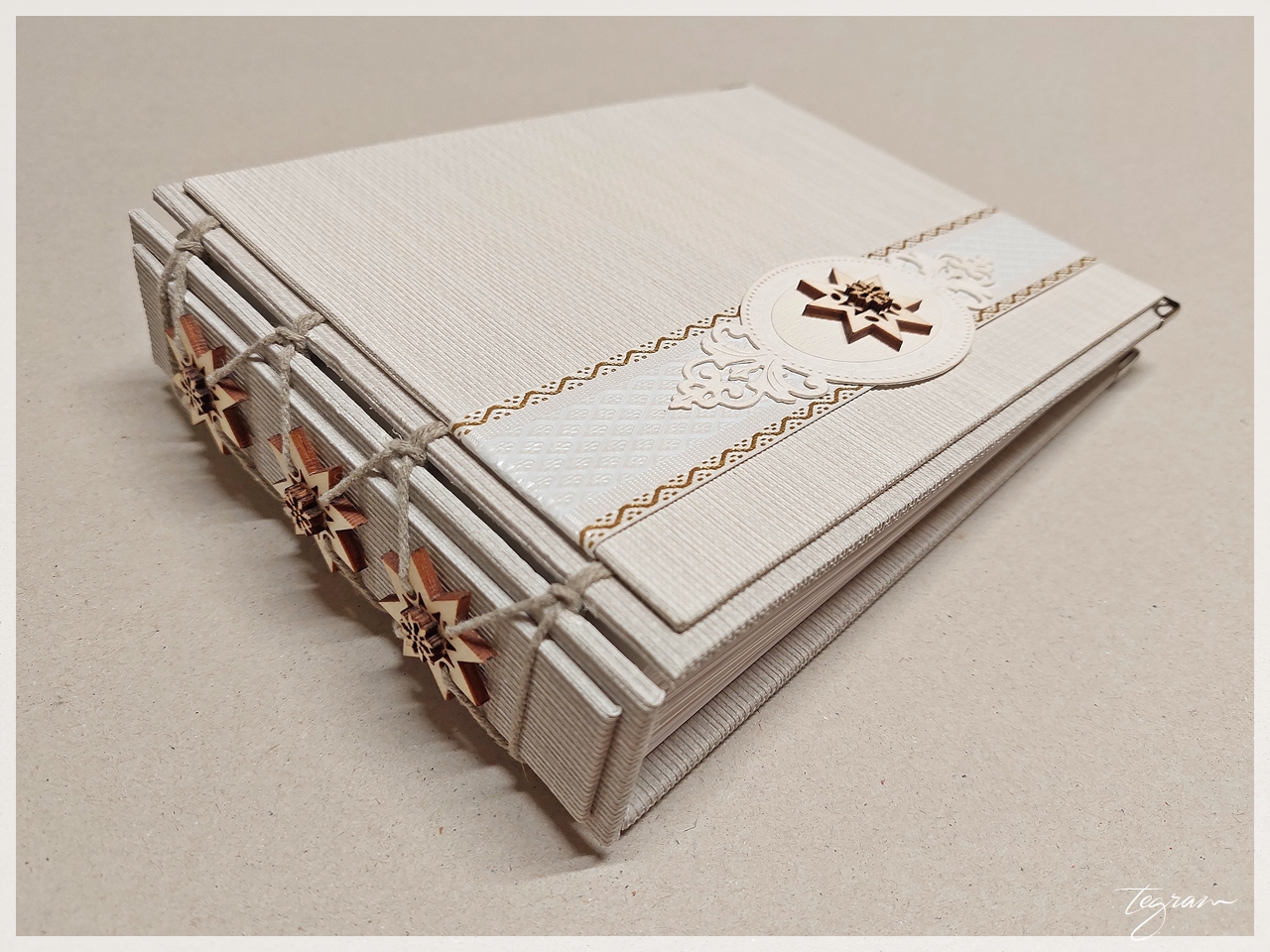 Fotoalbum on valmistatud 3mm köitepapist ja kaetud õrnbeeži, kangast meenutava kattematerjaliga. Albumis on 25 valget lehekülge ja fotosid kaitsvad vahelehed. Album mahutab ca 50 fotot vm. mälestusväärset.